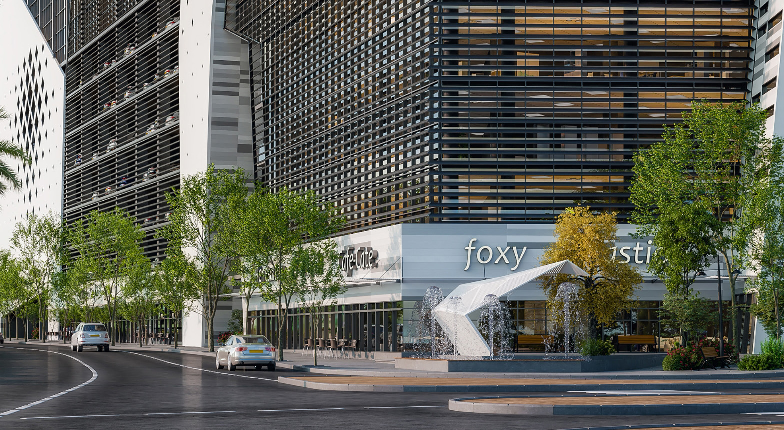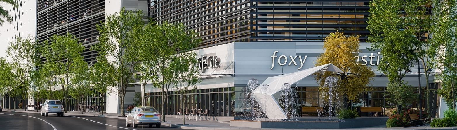 עירוב שימושים מוצלח של משרדים, מסחר וחניון עילי